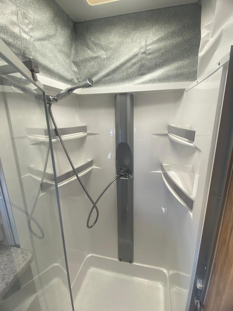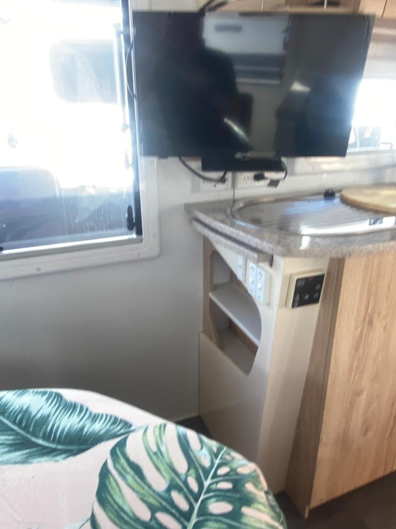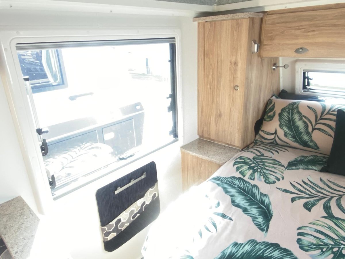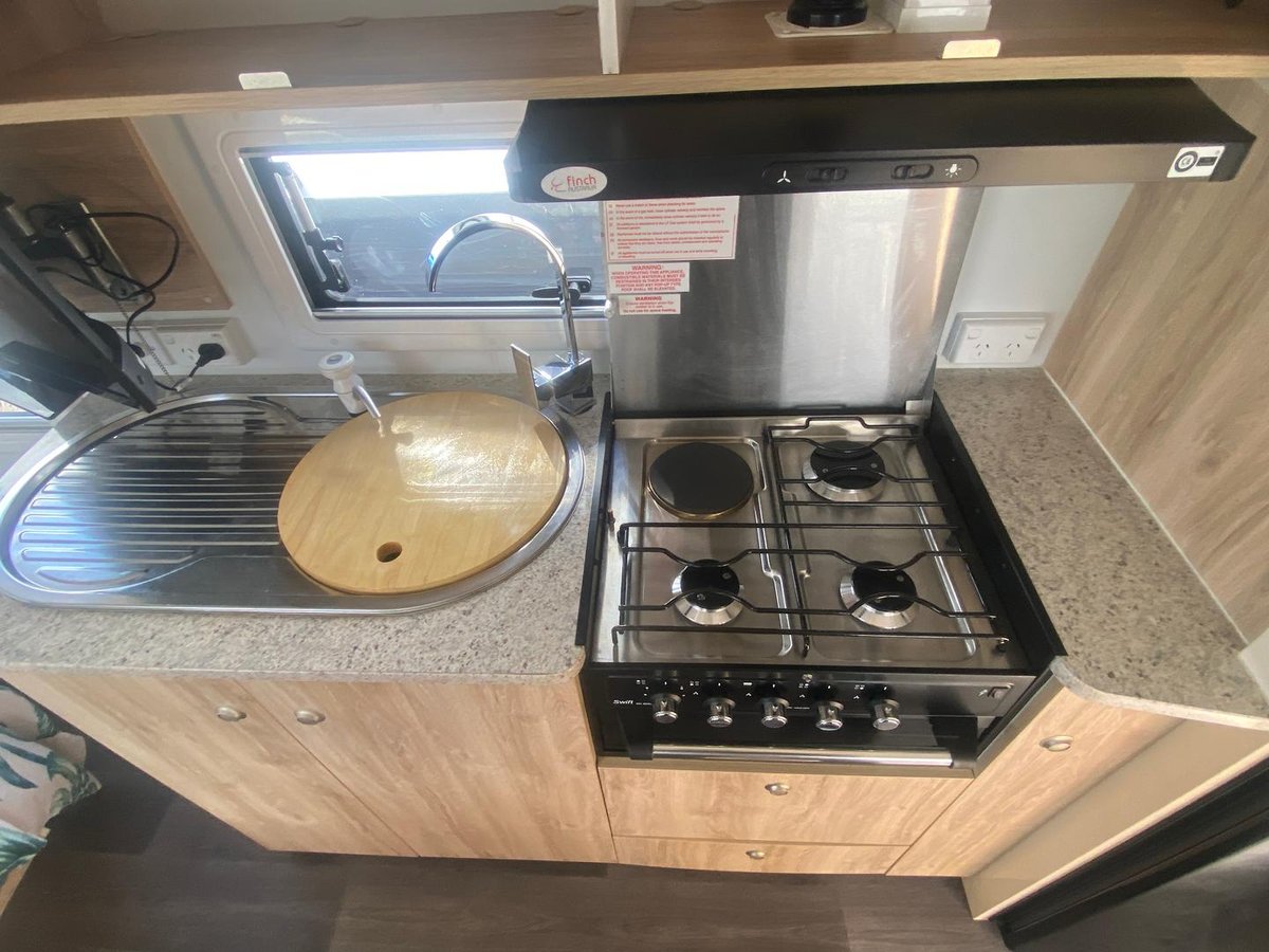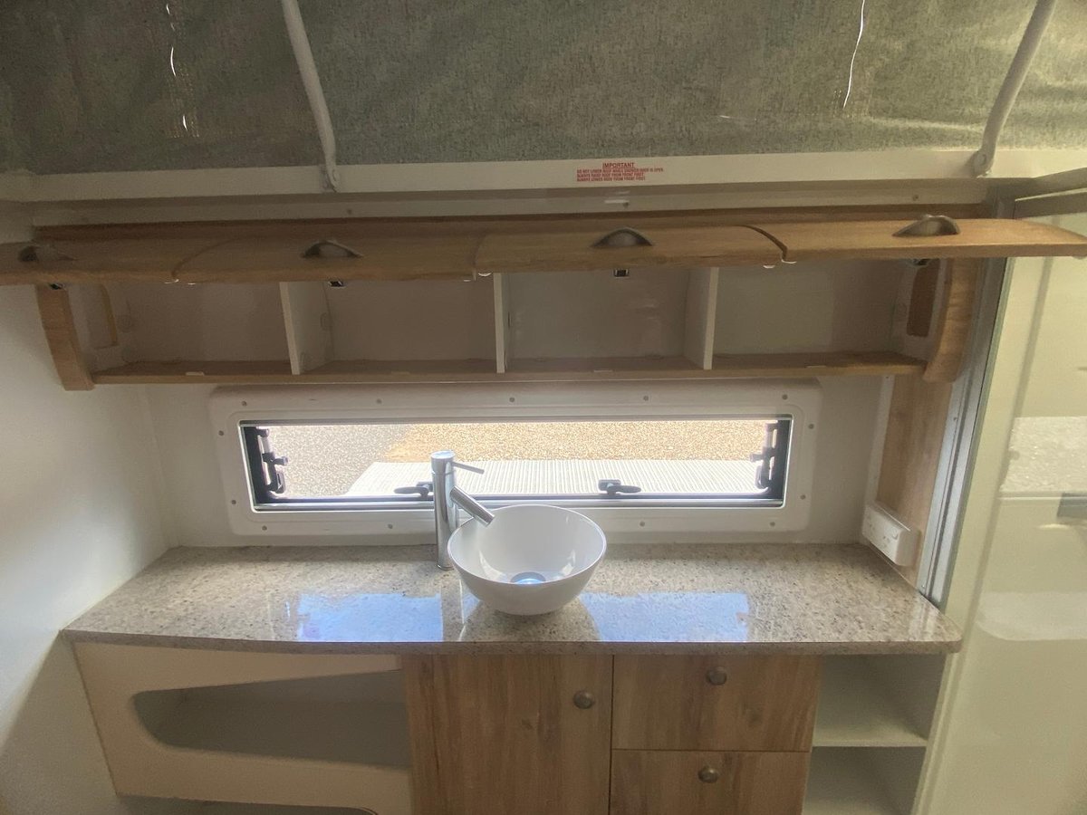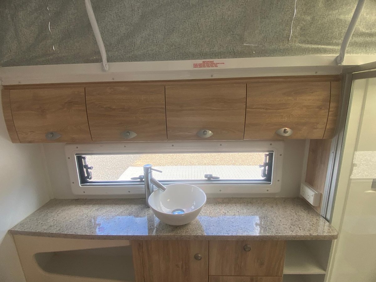 Inside you’ll find a comfortable island bed with storage underneath, plenty of wardrobe space, and a relaxing L-shaped dinette that’s perfect for meals or unwinding after a day on the road, a full ensuite with separate shower, toilet, and vanity, giving you all the comforts of home while travelling.
